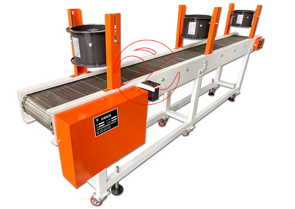 網帶輸送機以金屬絲編織輸送帶為載體,在一定的線路上連續輸送物料的機械,常輸送塊狀、顆粒狀與整件物料的水平傾斜轉彎方向的輸送,網帶食品輸送機具有網孔,且網孔的大小可按需要選擇,食品輸送機網帶的長度可任意選定。網帶輸送機可按需加工成提升輸送機、轉彎輸送機、環形輸送機等網帶輸送線。
